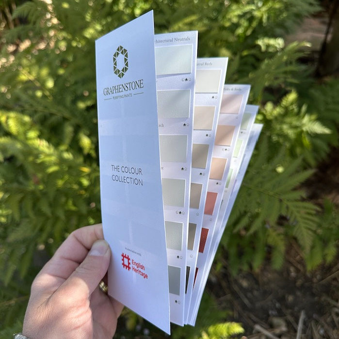This is the official Graphenstone natural paint colour chart which has samples of the actual Graphenstone natural paint used for the swatches.